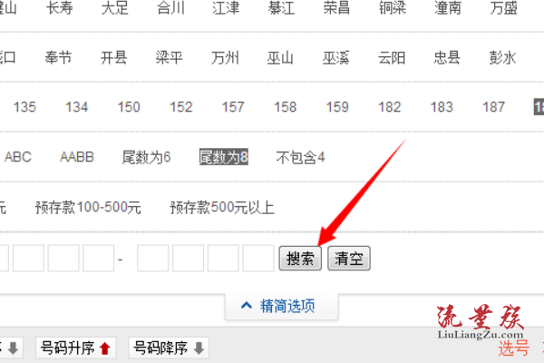 6、在筛选结果中寻找,看是否有想要的号。如果没有,可以过一段时段来看看,因为毕竟是免费的东西,有运气成份。如果有充裕的资金,直接可以预存高额话费拿靓号。