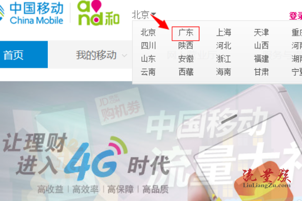 2、在首页顶部选择自己所在的省或地域,如“广东”。