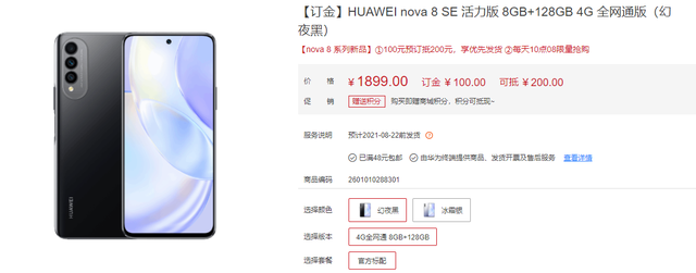 除了芯片之外,华为nova 8 SE活力版其他配置也并不给力,正面配备的6.6英寸LCD挖孔屏,并没有当下主流的高刷新率支持,而且屏占比仅88.63%。后置4800万+200万+200万三摄,其中还有两颗凑数镜头,前摄也仅800万像素。